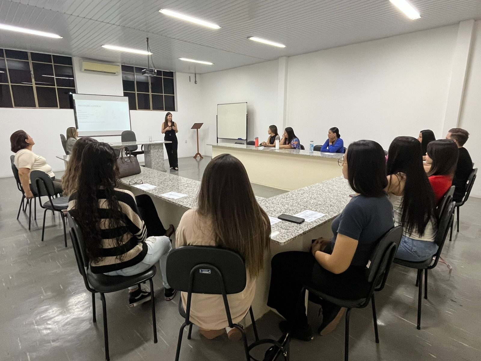 A palestrante Tânia Rodrigues Ferreira, iniciou o momento ressaltando a importância do diagnóstico precoce das pessoas portadoras de tais transtornos tendo em vista os enormes ganhos em termos de tratamento. Ademais, enfatizou sobre a importância de se discutir sobre a temática, principalmente no ambiente acadêmico, na finalidade de superar estigmas e de se difundir informações concisas.